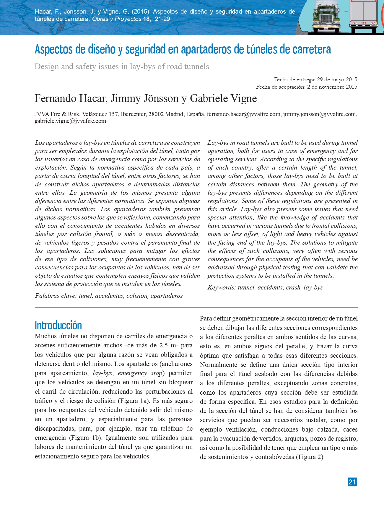 Aspectos de diseño y seguridad en apartaderos de túneles de carretera