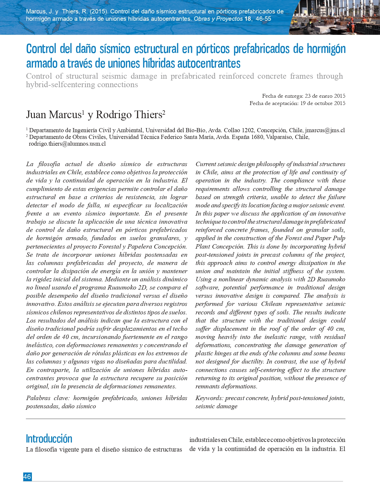 Control del daño sísmico estructural en pórticos prefabricados de hormigón armado a través de uniones híbridas autocentrantes