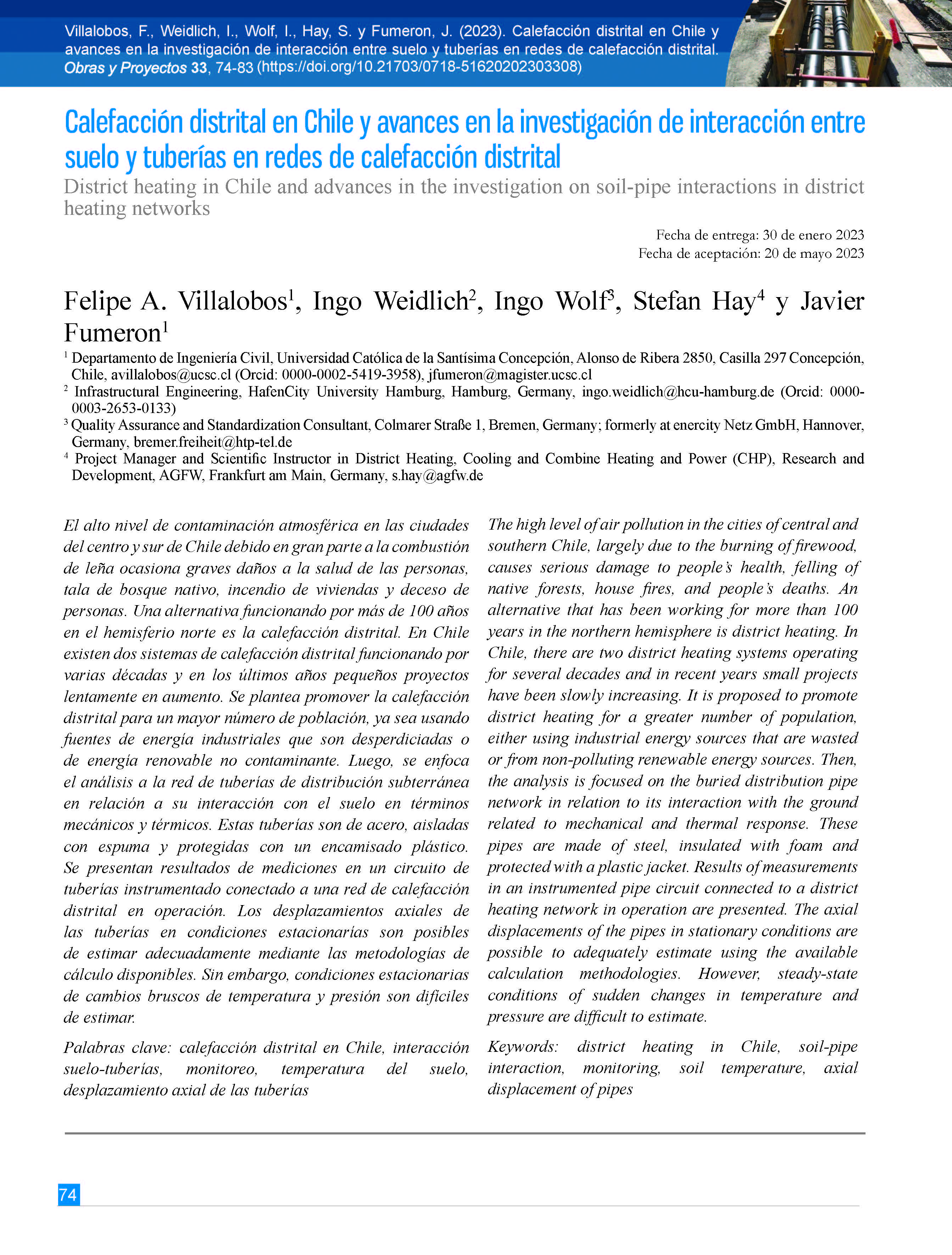 district heating in Chile, soil-pipe interaction, monitoring, soil temperature, axial displacement of pipesAbstract