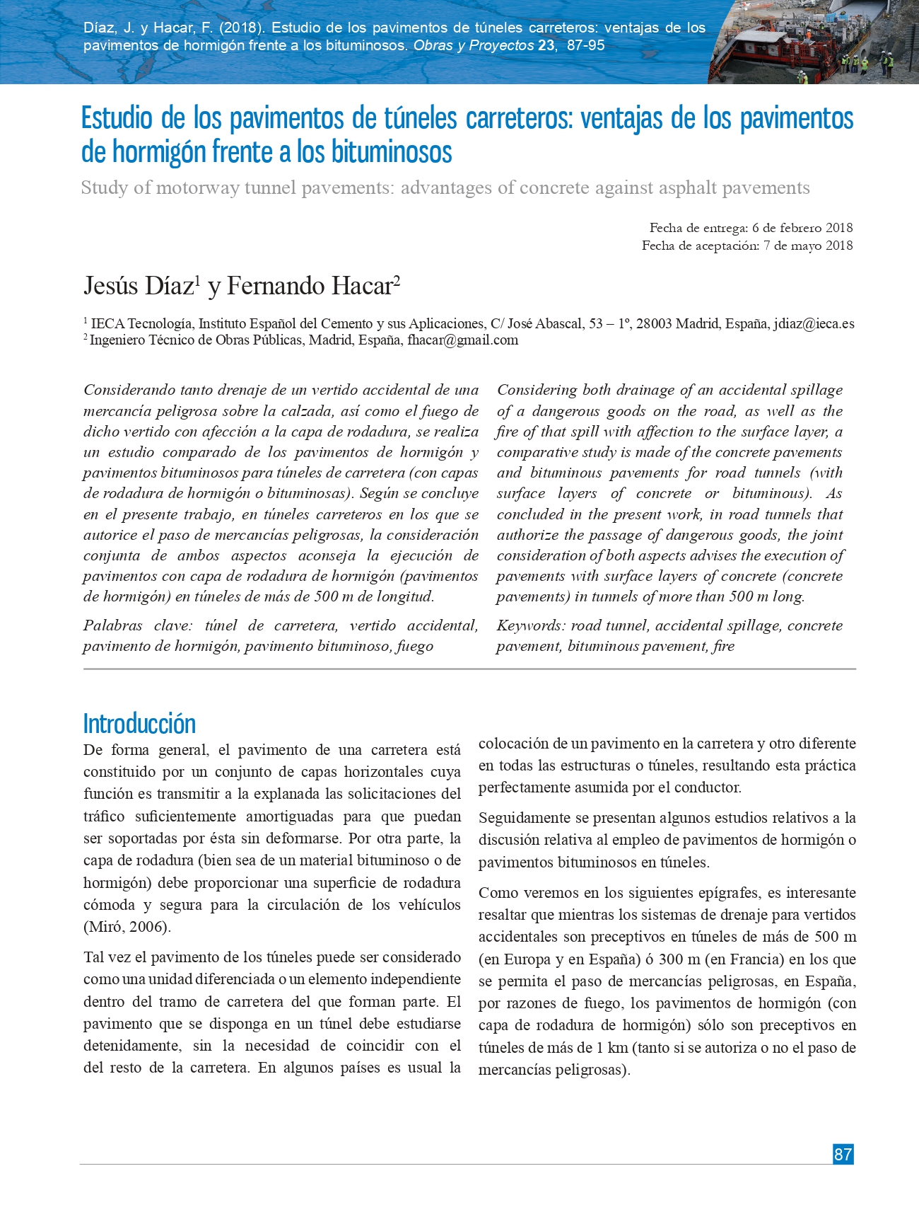 Jofré, C., Romero, J. y Rueda, R. (2010b). Pavimentos de hormigón en túneles. Su influencia en la seguridad frente al fuego. Instituto Español del Cemento y sus Aplicaciones IECA, Madrid, España