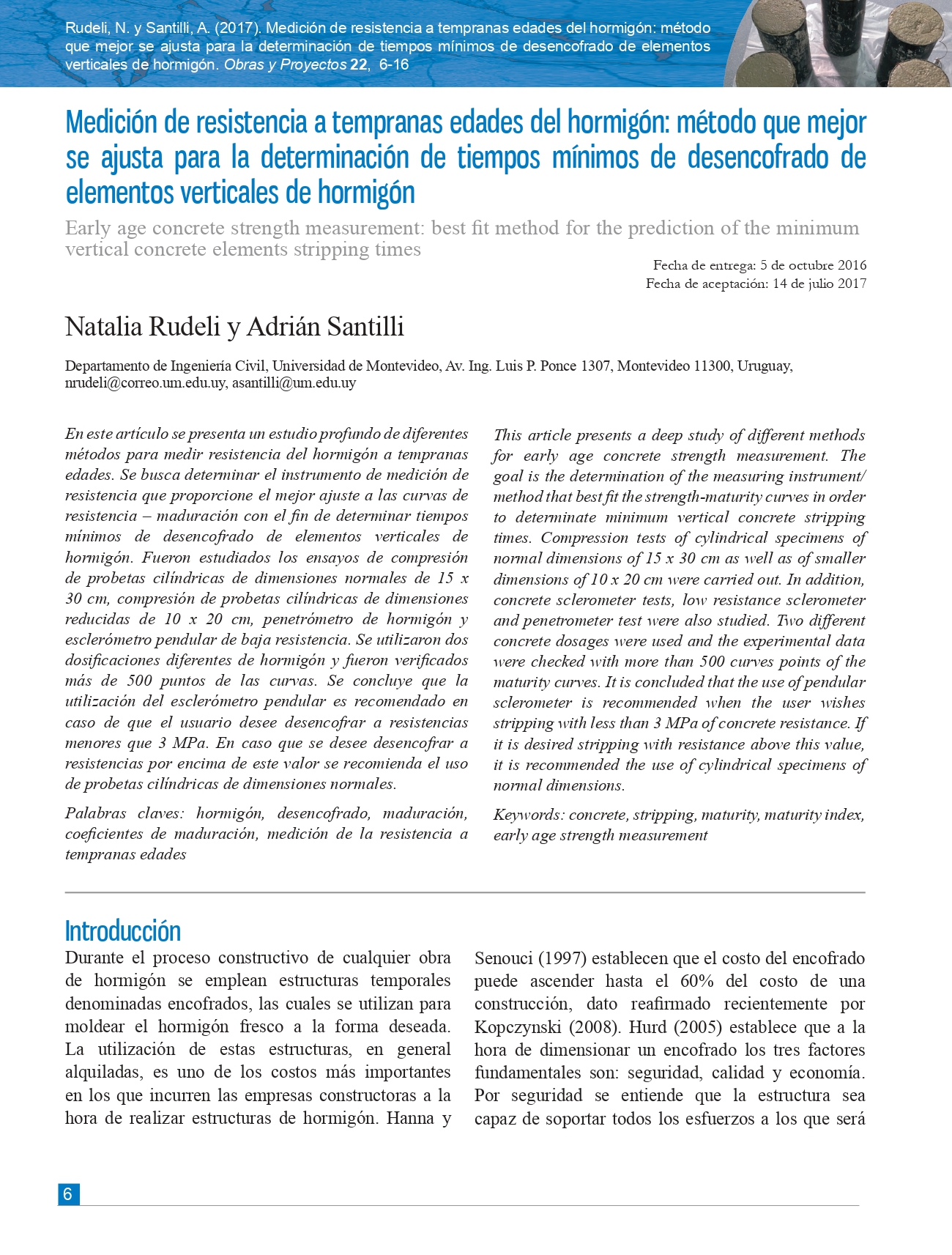Rudeli, N. y Santilli, A. (2014). Tiempos de desencofrado de elementos verticales de hormigón armado: Método a través de coeficientes de maduración y encuesta en Uruguay. Memorias de Trabajos de Difusión Científica y Técnica.