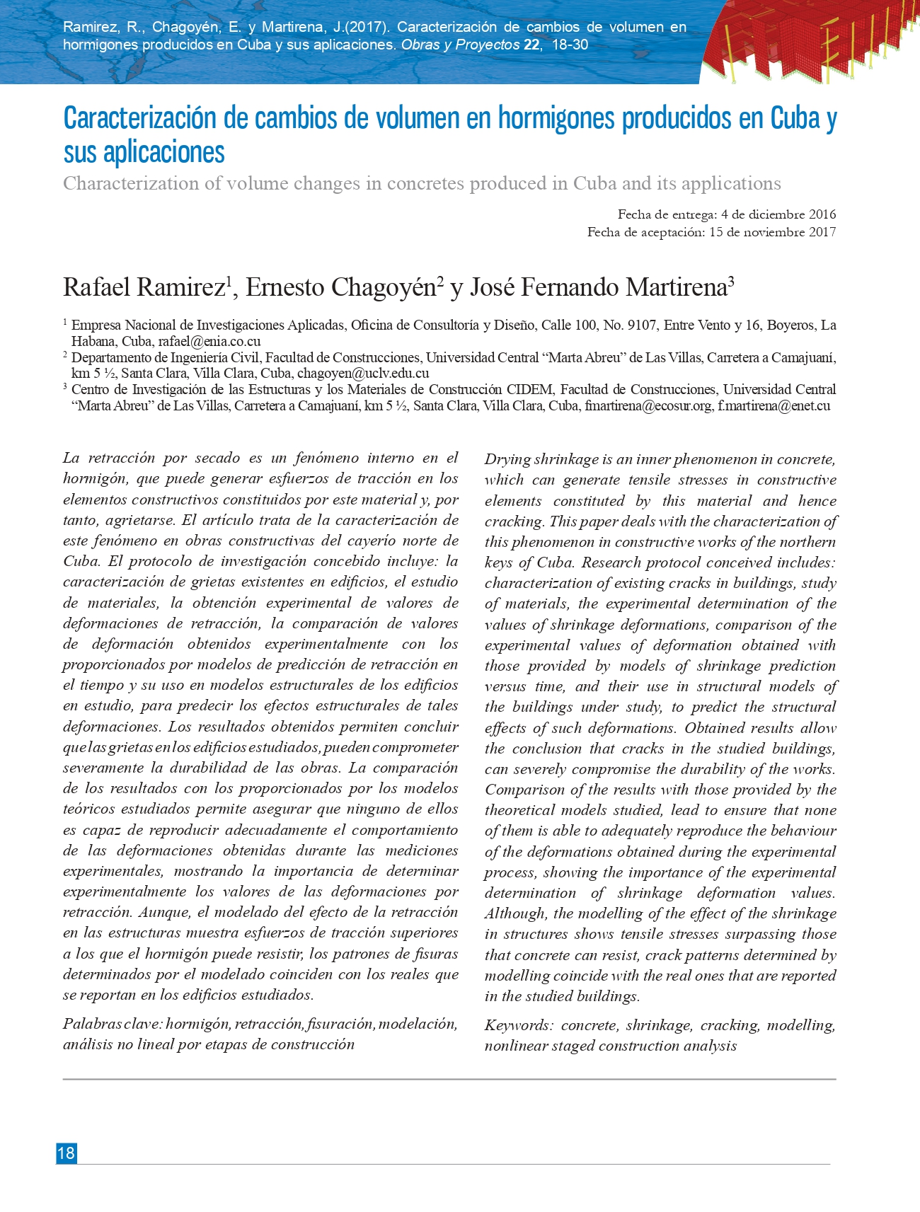 Drying shrinkage is an inner phenomenon in concrete, which can generate tensile stresses in constructive elements constituted by this material and hence cracking. This paper deals with the characterization of this phenomenon in constructive works of the northern keys of Cuba. Research protocol conceived includes: characterization of existing cracks in buildings, study of materials, the experimental determination of the values of shrinkage deformations, comparison of the experimental values of deformation obtained with those provided by models of shrinkage prediction versus time, and their use in structural models of the buildings under study, to predict the structural effects of such deformations. Obtained results allow the conclusion that cracks in the studied buildings, can severely compromise the durability of the works. Comparison of the results with those provided by the theoretical models studied, lead to ensure that none of them is able to adequately reproduce the behaviour of the deformations obtained during the experimental process, showing the importance of the experimental determination of shrinkage deformation values. Although, the modelling of the effect of the shrinkage in structures shows tensile stresses surpassing those that concrete can resist, crack patterns determined by modelling coincide with the real ones that are reported in the studied buildings.