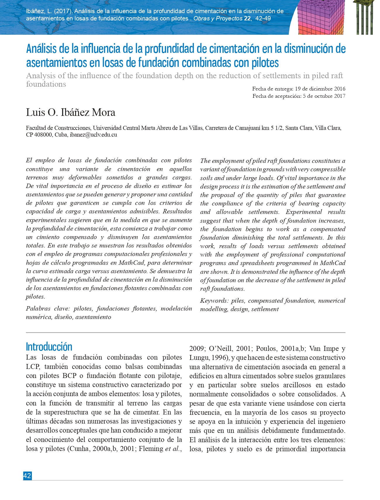 The employment of piled raft foundations constitutes a variant of foundation in grounds with very compressible soils and under large loads. Of vital importance in the design process it is the estimation of the settlement and the proposal of the quantity of piles that guarantee the compliance of the criteria of bearing capacity and allowable settlements. Experimental results suggest that when the depth of foundation increases, the foundation begins to work as a compensated foundation diminishing the total settlements. In this work, results of loads versus settlements obtained with the employment of professional computational programs and spreadsheets programmed in MathCad are shown. It is demonstrated the influence of the depth of foundation on the decrease of the settlement in piled raft foundations.