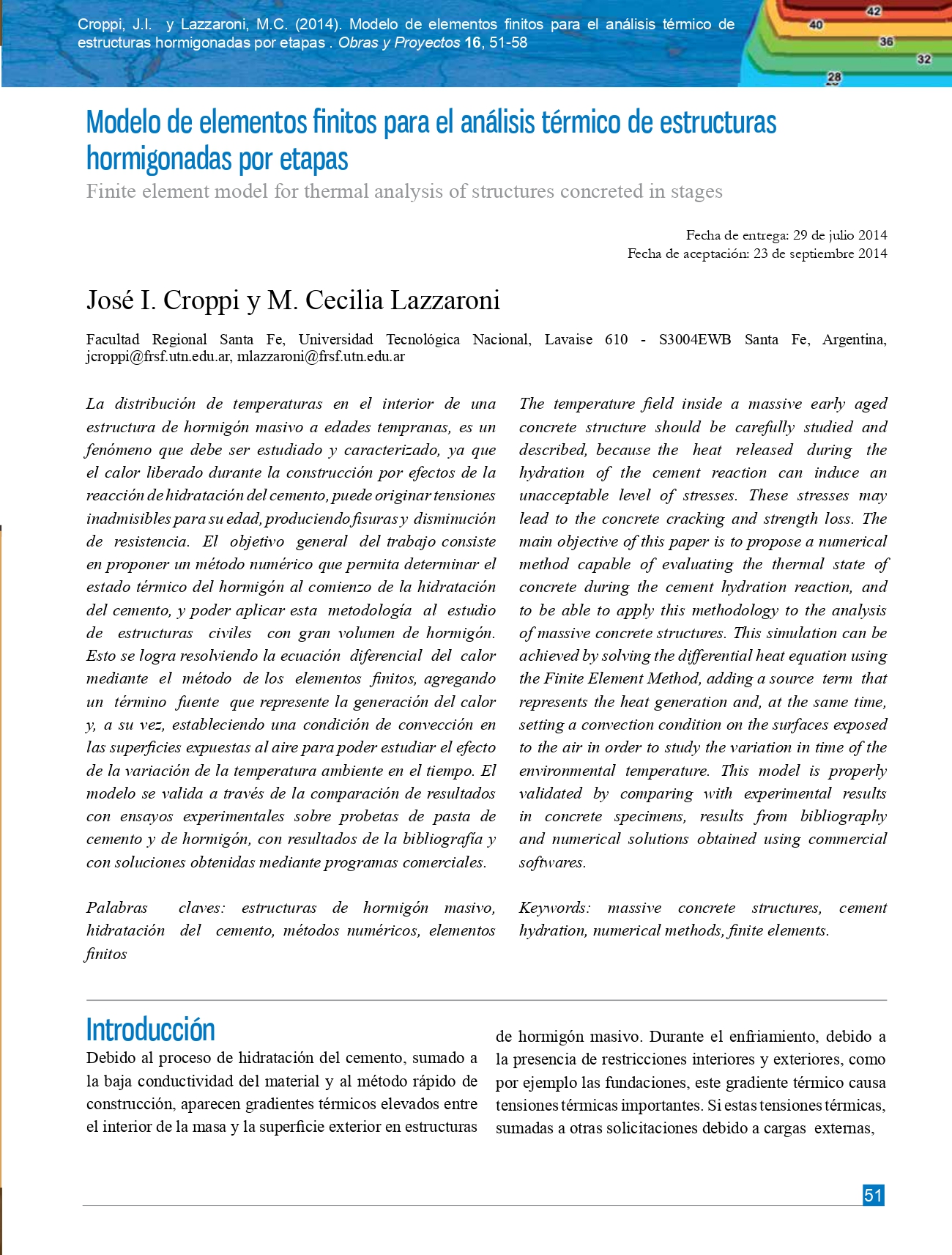 Cervera, M., Oliver, J. y Prato, T. (1999). Un modelo termo-químico-mecánico de hormigón a tempranas edades. Aplicación a la construcción de presas de HRC. Monografía CIMNE, 51
