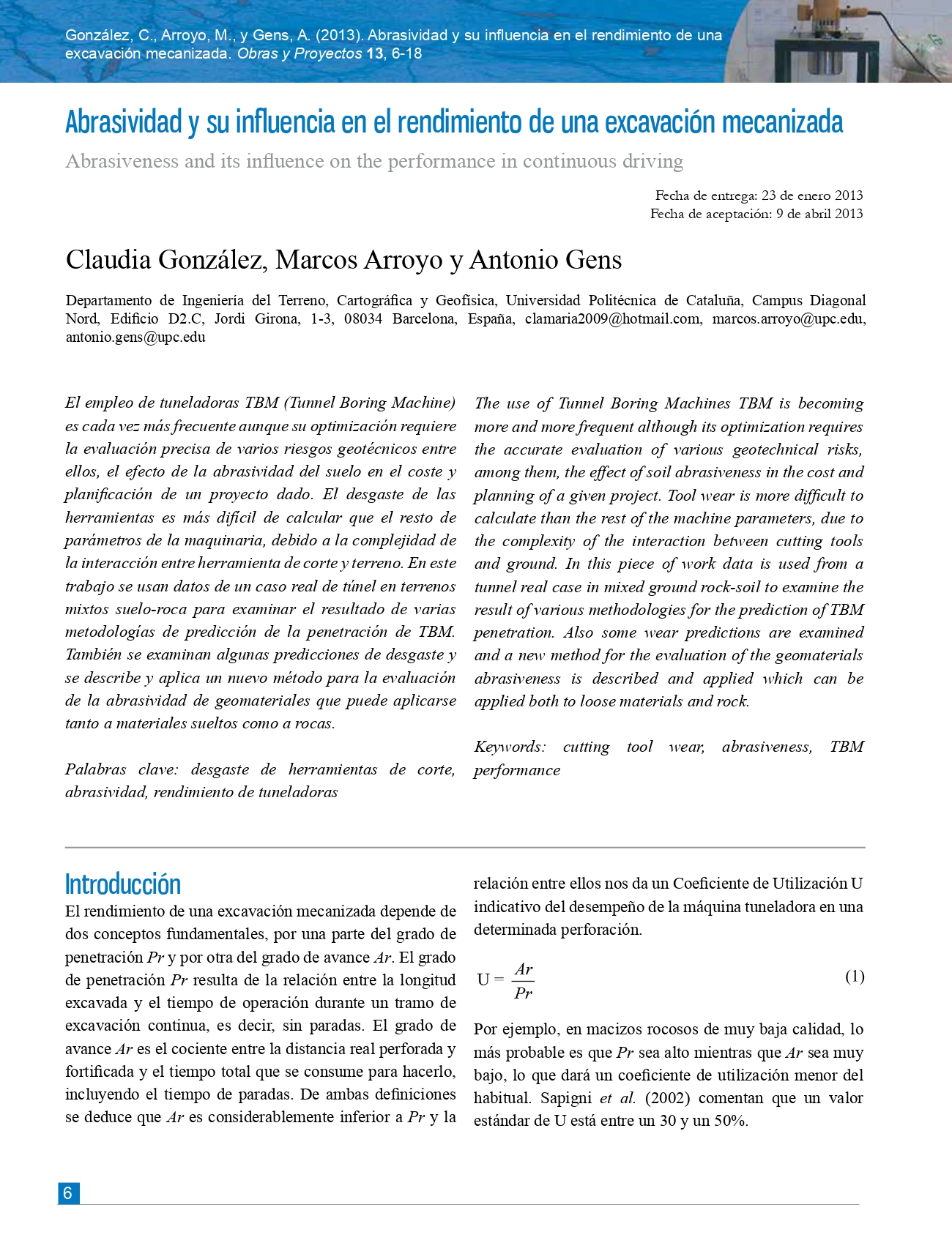 The use of Tunnel Boring Machines TBM is becoming more and more frequent although its optimization requires the accurate evaluation of various geotechnical risks, among them, the effect of soil abrasiveness in the cost and planning of a given project. Tool wear is more difficult to calculate than the rest of the machine parameters, due to the complexity of the interaction between cutting tools and ground. In this piece of work data is used from a tunnel real case in mixed ground rock-soil to examine the result of various methodologies for the prediction of TBM penetration. Also some wear predictions are examined and a new method for the evaluation of the geomaterials abrasiveness is described and applied which can be applied both to loose materials and rock.