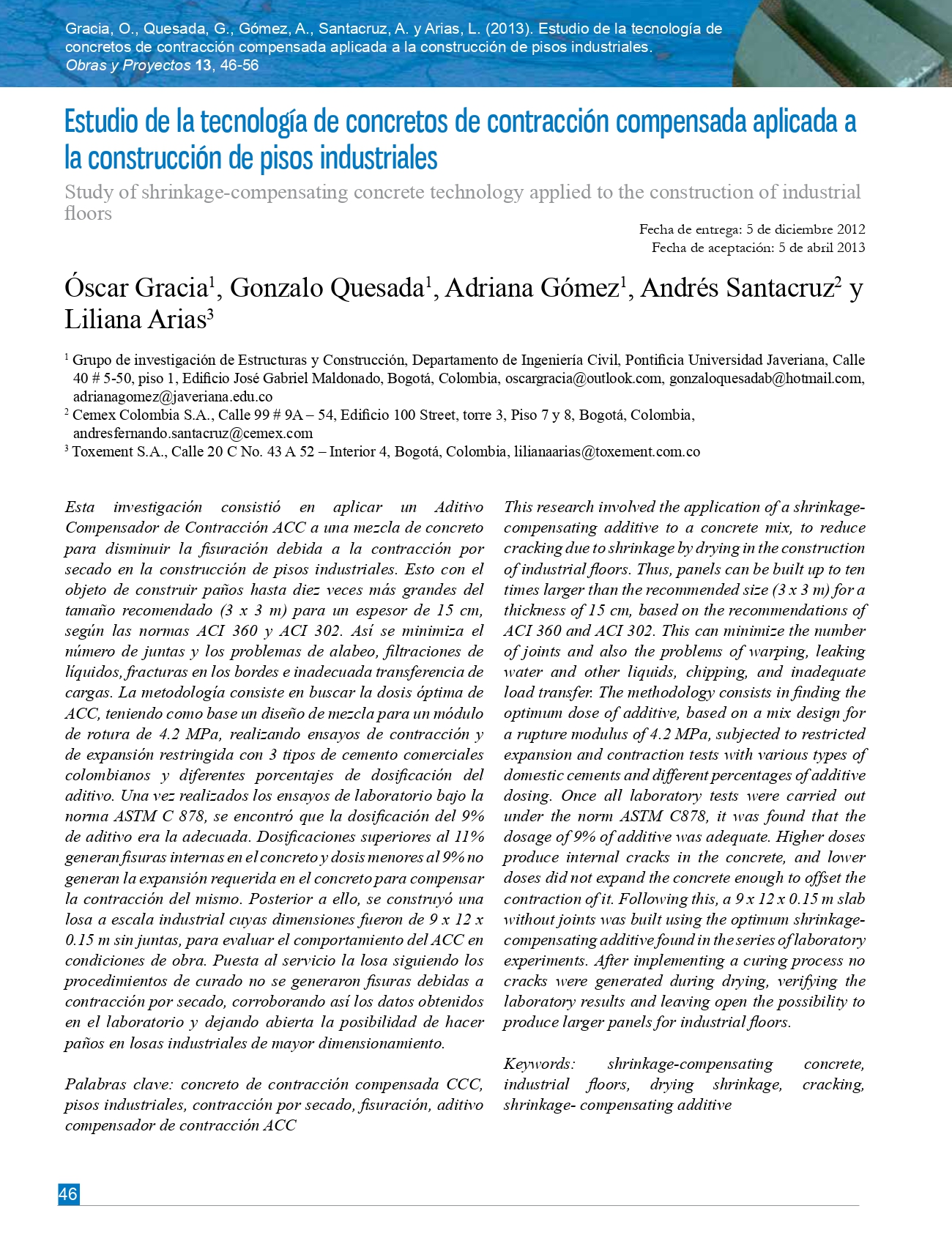 Luco, L. F., Pombo, R. and Torrent, R. (2003). Shrinkage-compensating concrete in Argentina. Concrete International 25(5), 91-101.