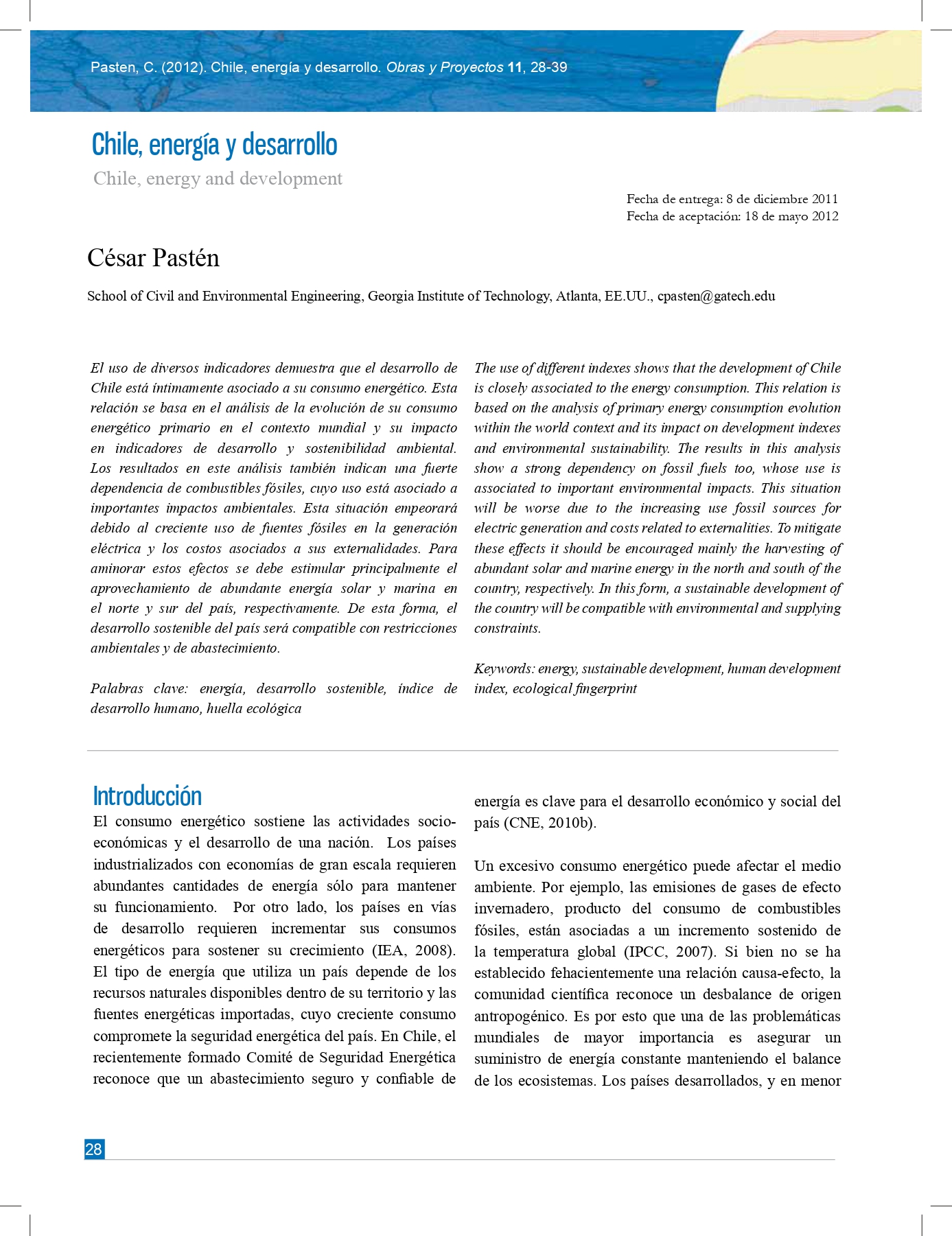 Pasten, C. and Santamarina, J. C. (2012). Energy and quality of life. Energy Policy (aceptado).