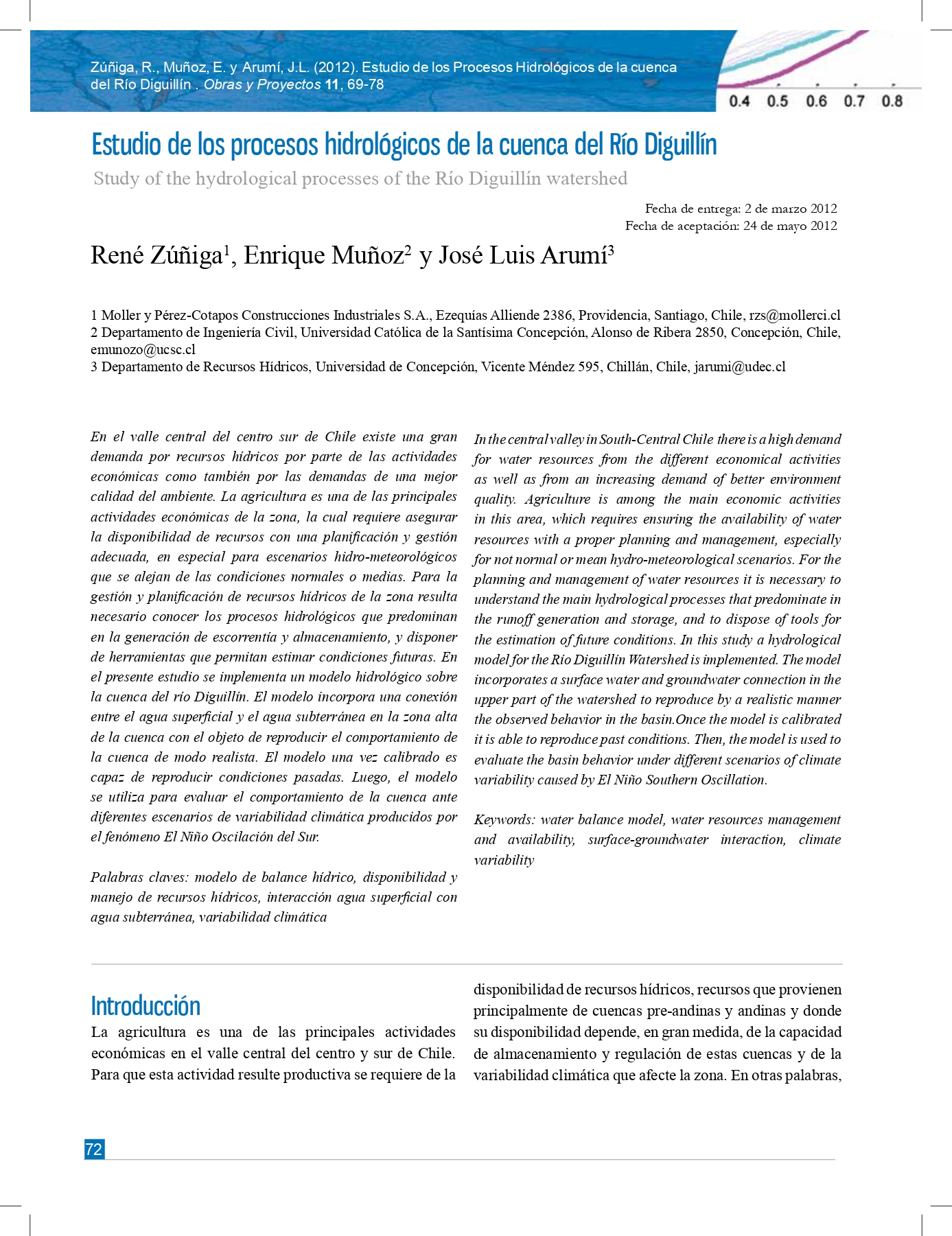 Ortiz, G., Muñoz, E. y Tume, P. (2011). Incerteza en las variables de entrada de un modelo hidrológico conceptual. Efectos sobre la incerteza en las salidas. XX Congreso Chileno de Hidráulica, Octubre 2011, Santiago, Chile.